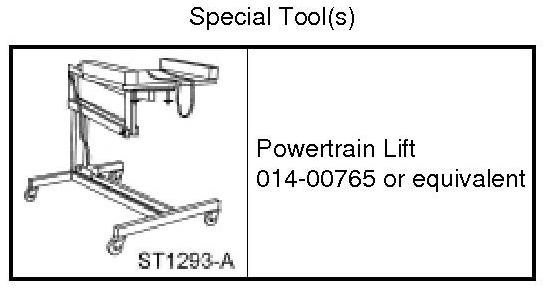 1. With the vehicle in NEUTRAL, position it on a hoist. For additional information, refer to Jacking and Lifting Service and Repair.
