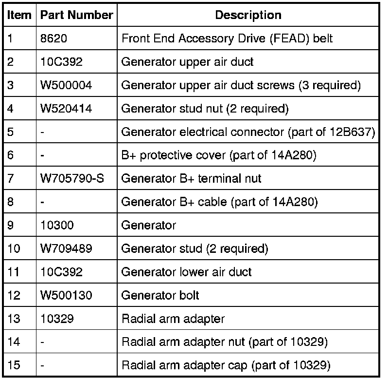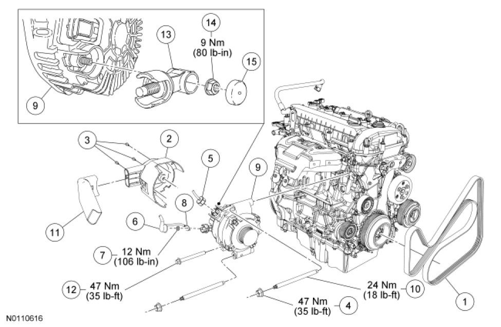 10. Tighten the generator bolt to 47 Nm (35 lb-ft).