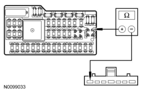 - Measure the resistance between SJB fuse 28 (5A), circuit CDC35 (BU/WH), input side and ignition switch C250-7, circuit CDC35 (BU/WH), harness side.
