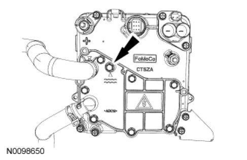 1. NOTICE: Adhesives, stop-leak pellets or small foreign material in the Motor Electronics Cooling System (MECS) can cause poor performance or temporary blockage of the motor electronics pump. Only use clean, approved coolant when filling the system.