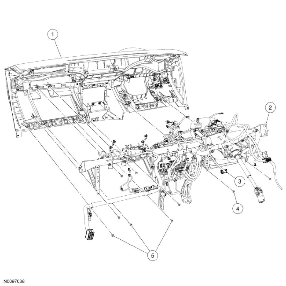 21. NOTICE: To avoid damaging the instrument panel upper section, the aid of an assistant is required to carry out this step.