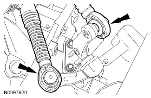10. Adjust the gearshift cables. For additional information, refer to Manual Transaxle/Transmission and Clutch - General Information Adjustments.