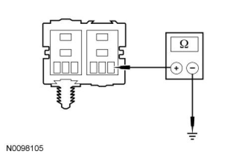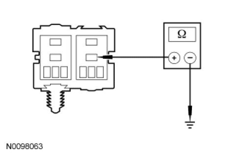 - Measure the resistance between driver heated seat relay socket pin 5, circuit CHS02 (YE/BU), harness side and ground.