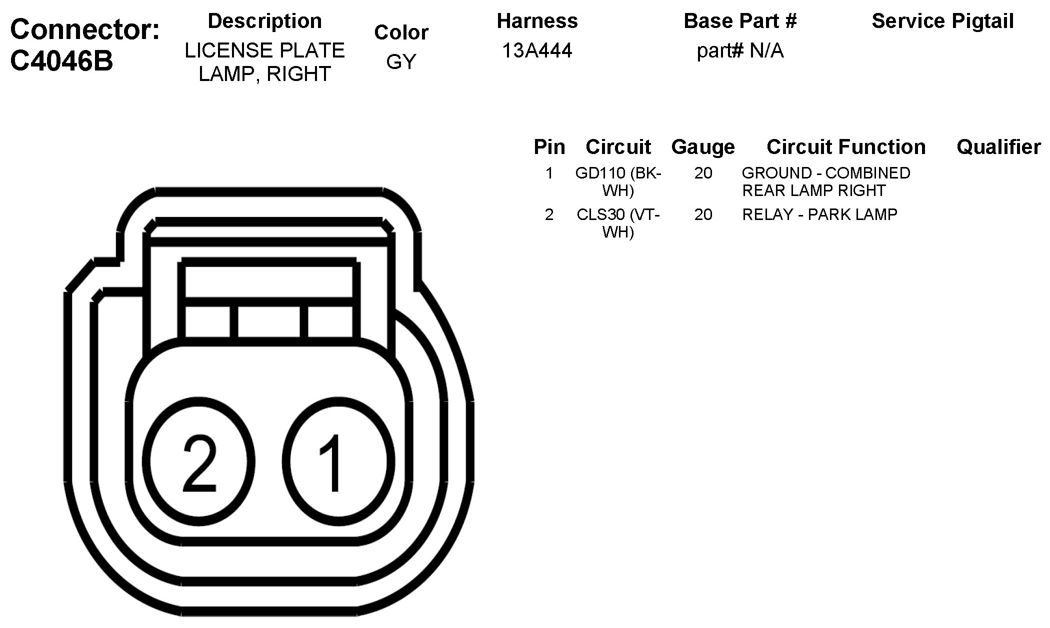 C4046B License Plate Lamp, Right