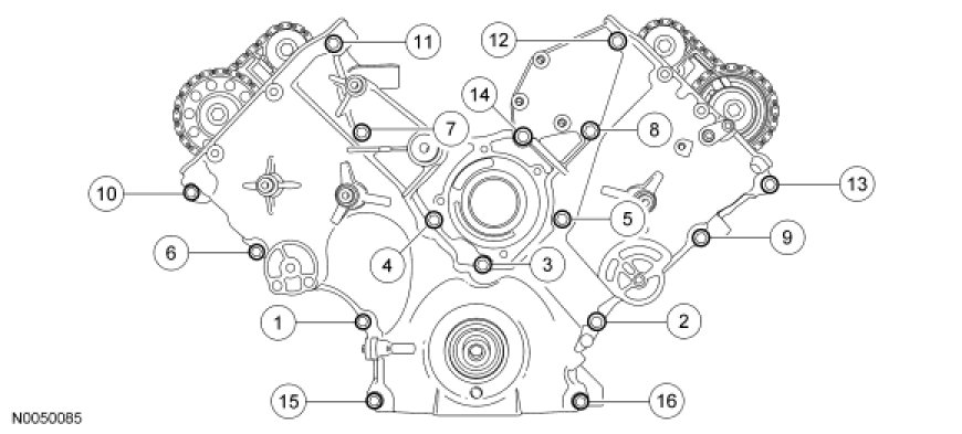 - Bolts 1 through 14 to 25 Nm (18 lb-ft).