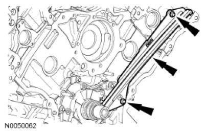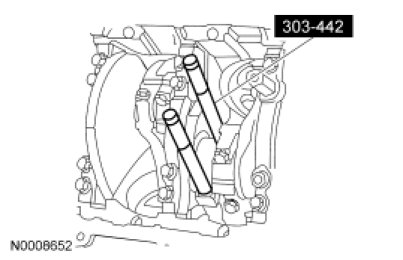 NOTICE: During engine repair procedures, cleanliness is extremely important. Any foreign material, including any material created while cleaning gasket surfaces, that enters the oil passages, coolant passages or the oil pan, can cause engine failure.