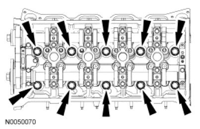 25. Tighten the new RH cylinder head bolts in 5 stages in the sequence shown.
