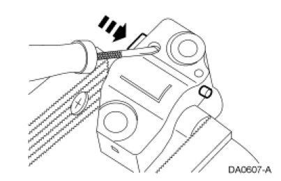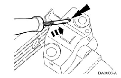 28. Using a small screwdriver or pick, push back and hold the ratchet mechanism.