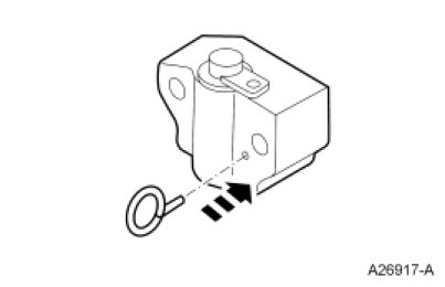 30. Install a suitable pin into the hole of each tensioner housing to hold the ratchet assembly and plunger in place during installation.