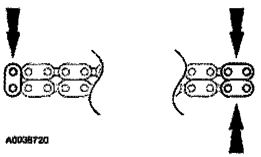 31. If the colored links are not visible, mark one link on one end and 2 links on the other end, and use as timing marks.
