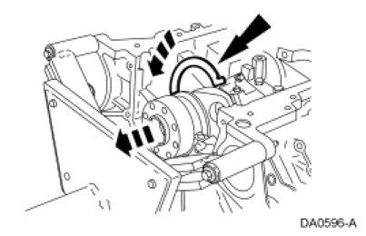 10. Push the crankshaft forward to seat the crankshaft thrust washer. Hold the crankshaft in the forward position.