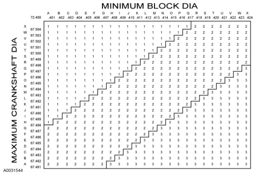 3. Using the data recorded in the previous 2 steps, cross-reference using the chart to obtain bearing grade.