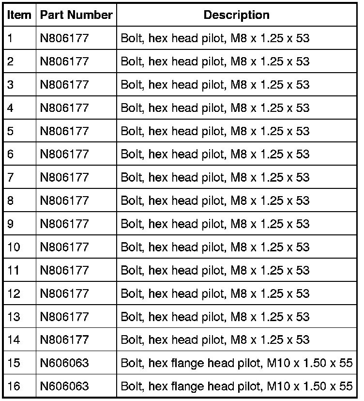 - Bolts 15 and 16 to 50 Nm (37 lb-ft).