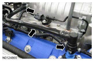 93. Attach the wiring harness retainers to the RH coil-on-plug cover stud bolts.