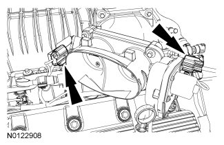 107. Connect the Throttle Position (TP) sensor and Electronic Throttle Control (ETC) electrical connectors.