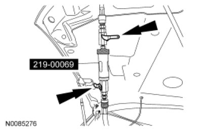 4. NOTICE: Make sure all tools and hoses are clear of the engine cooling fan and drive belt before starting the engine. Failure to keep tools and hoses clear from the engine cooling fan and drive belt will result in damage to the tools and/or vehicle.