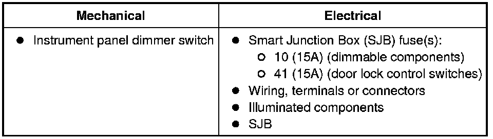 10. If no DTCs related to the concern are retrieved, GO to Symptom Chart. Instrument Cluster and Panel Illumination