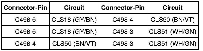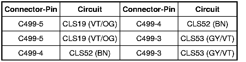 - Measure the voltage between the LH rear lamp C498-7, circuit CLS54 (BU/OG), harness side and ground: or between the RH rear Lamp C499-7, circuit CLS55 (GN/BU), harness side and ground.
