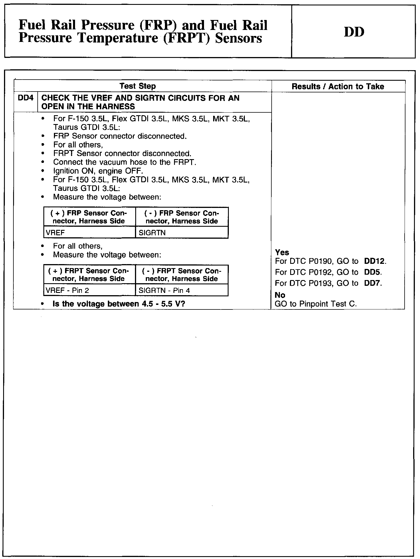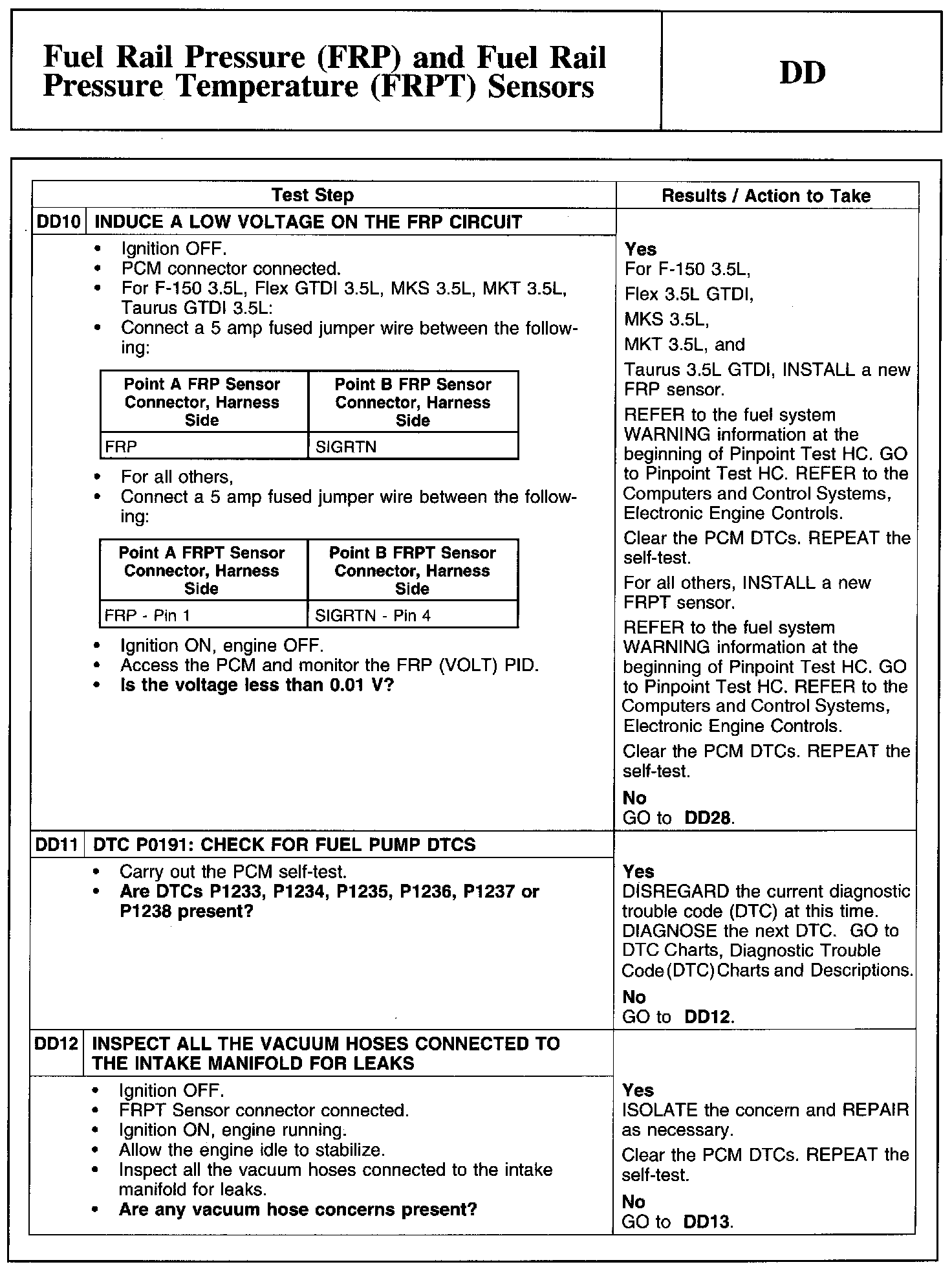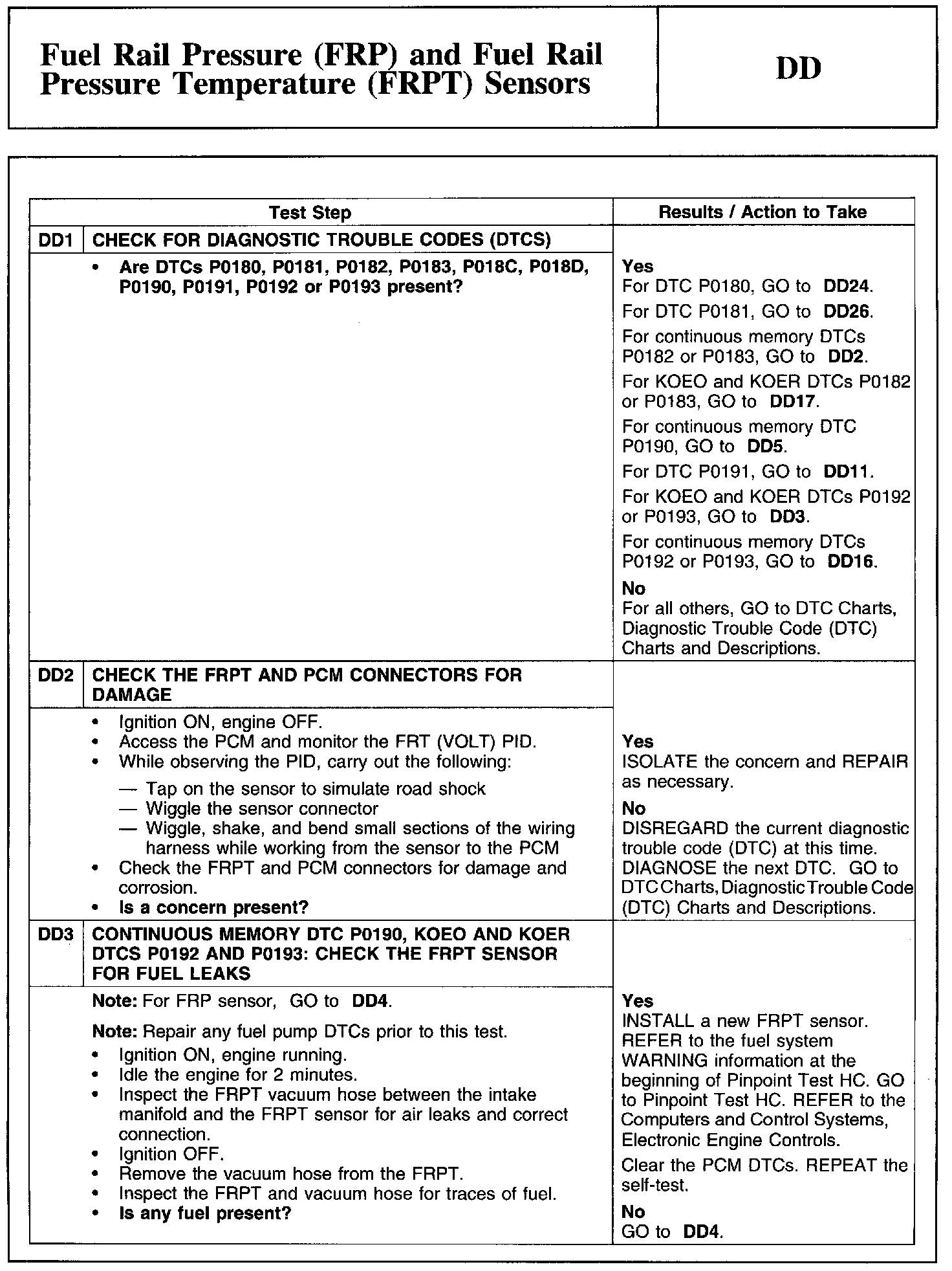 PINPOINT TEST DD: FUEL RAIL PRESSURE (FRP) AND FUEL RAIL PRESSURE TEMPERATURE (FRPT) SENSORSWarning, Note And Tables And Graphs: