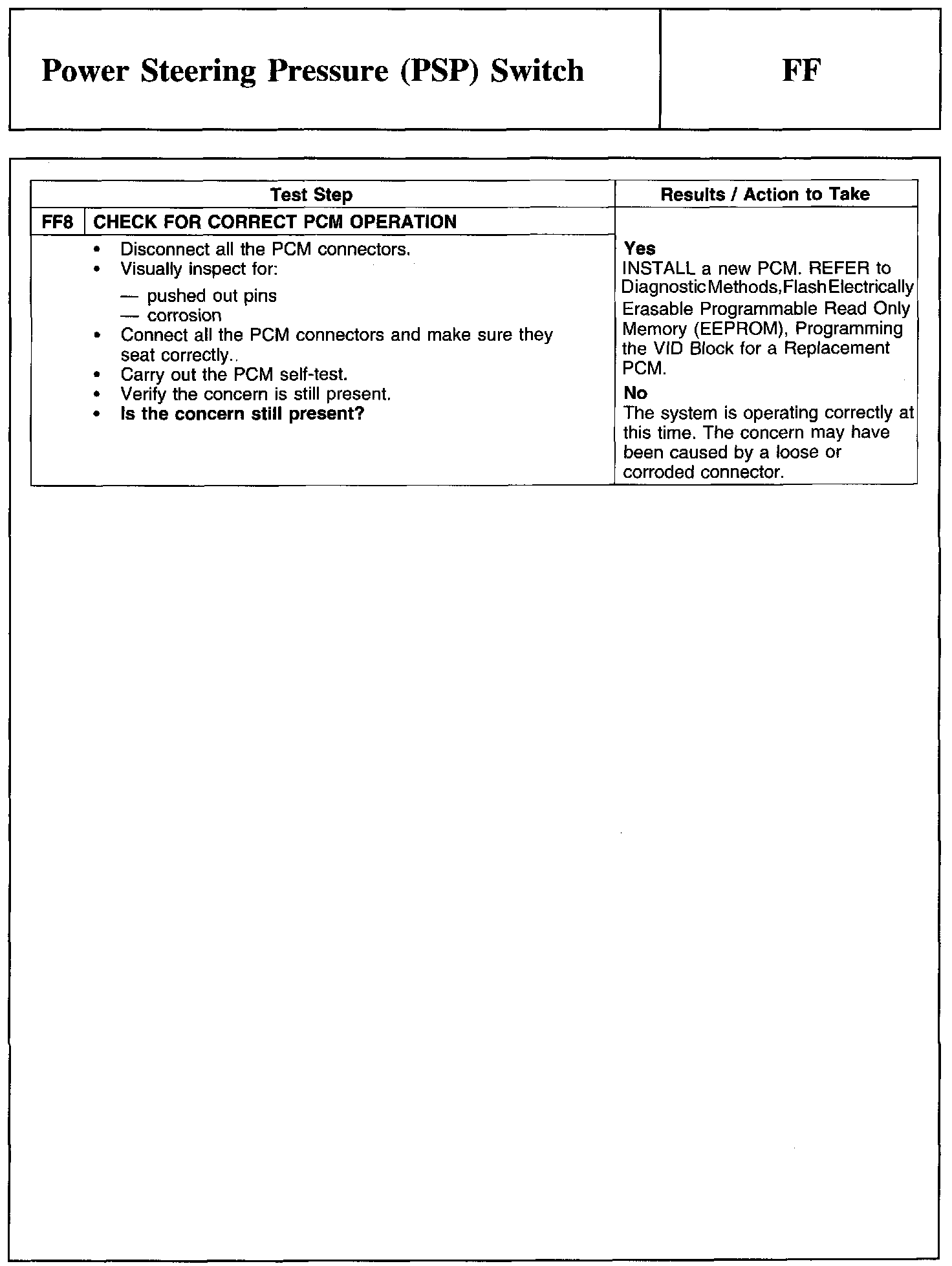 PINPOINT TEST FF: POWER STEERING PRESSURE (PSP) SWITCHWarning And Power Steering Pressure (PSP) Switch Connector: