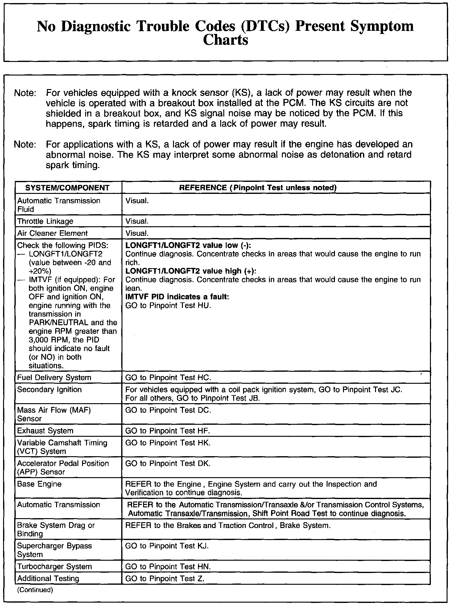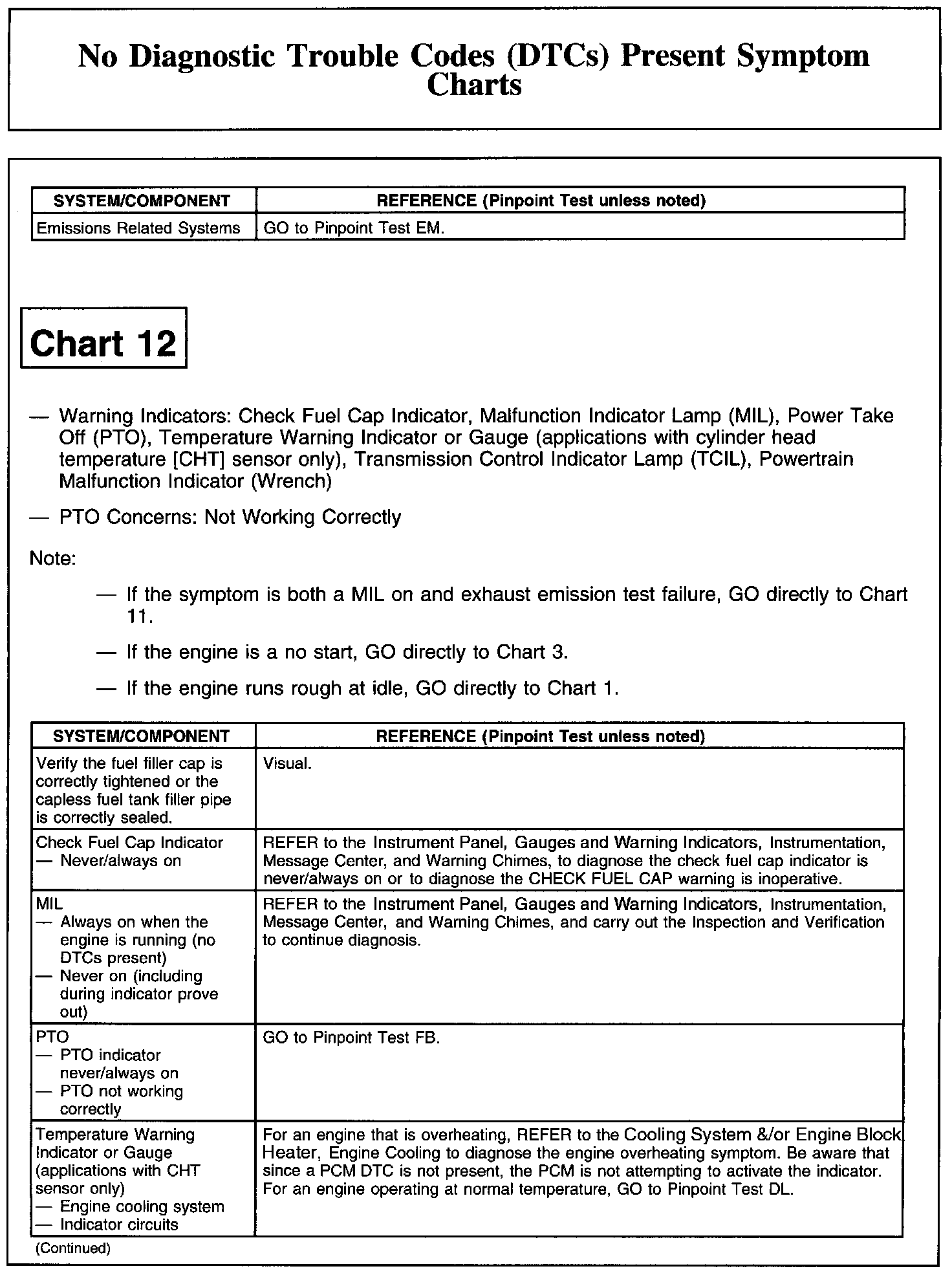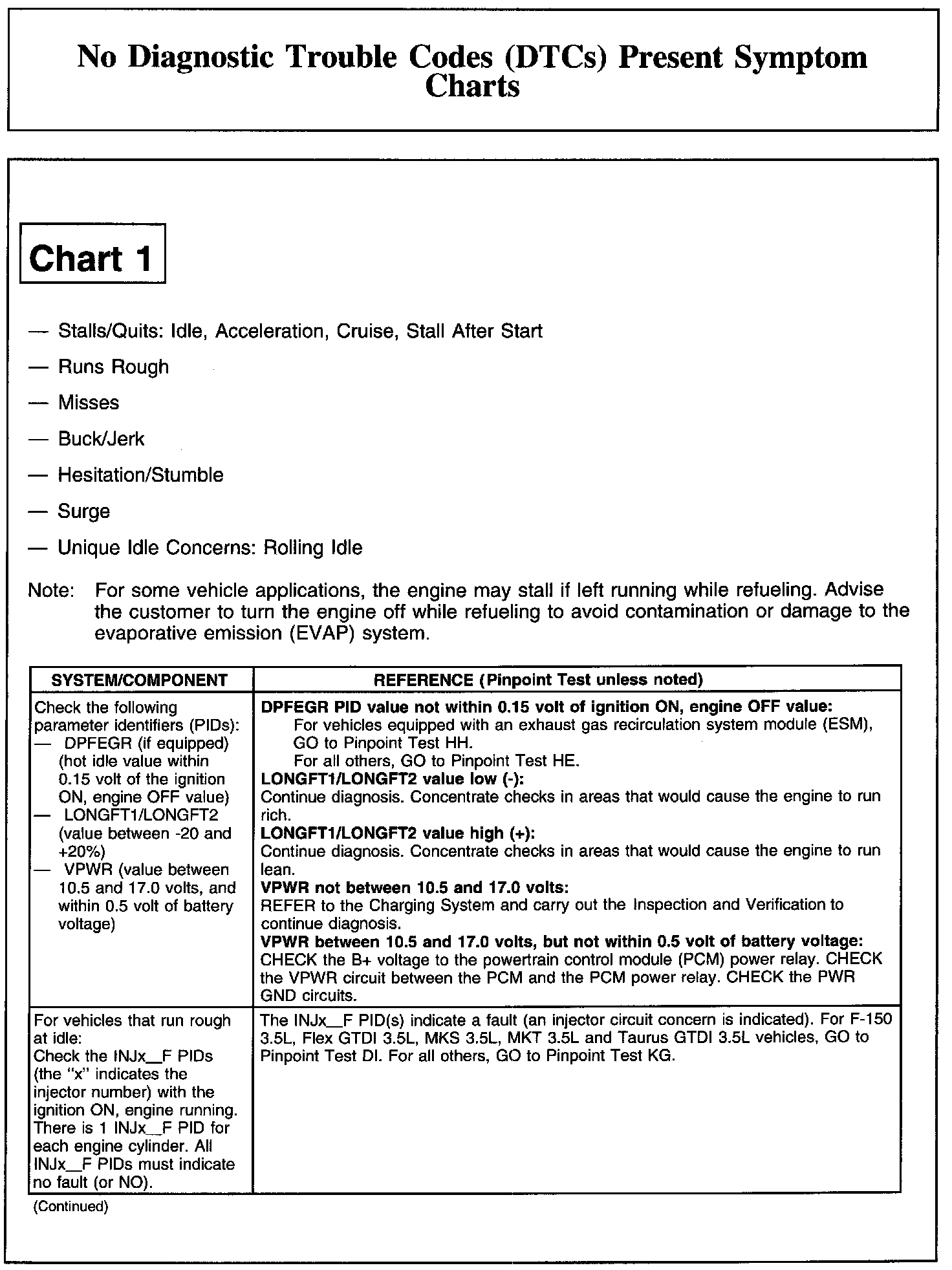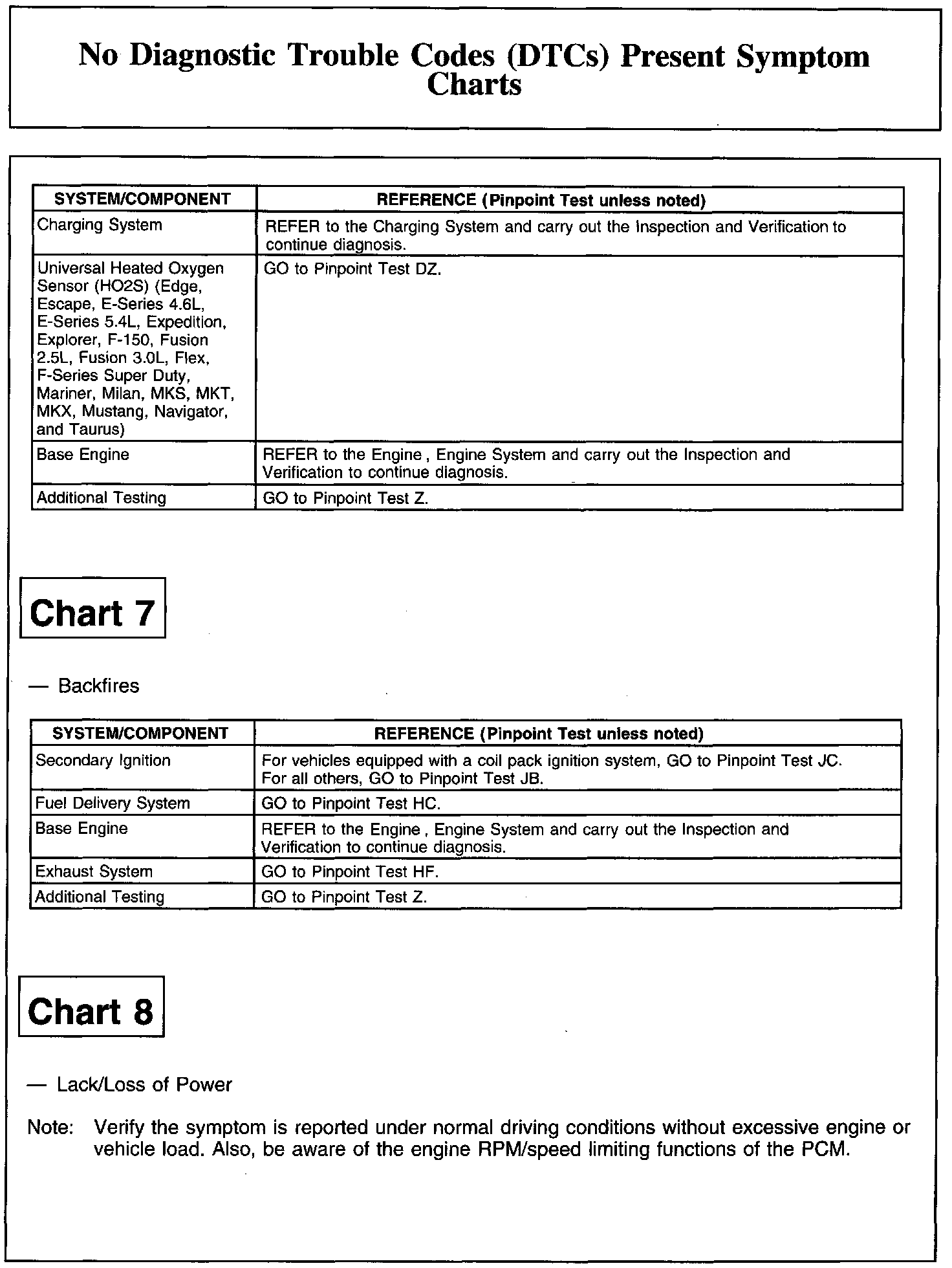 NO DIAGNOSTIC TROUBLE CODES (DTCS) PRESENT SYMPTOM CHARTS