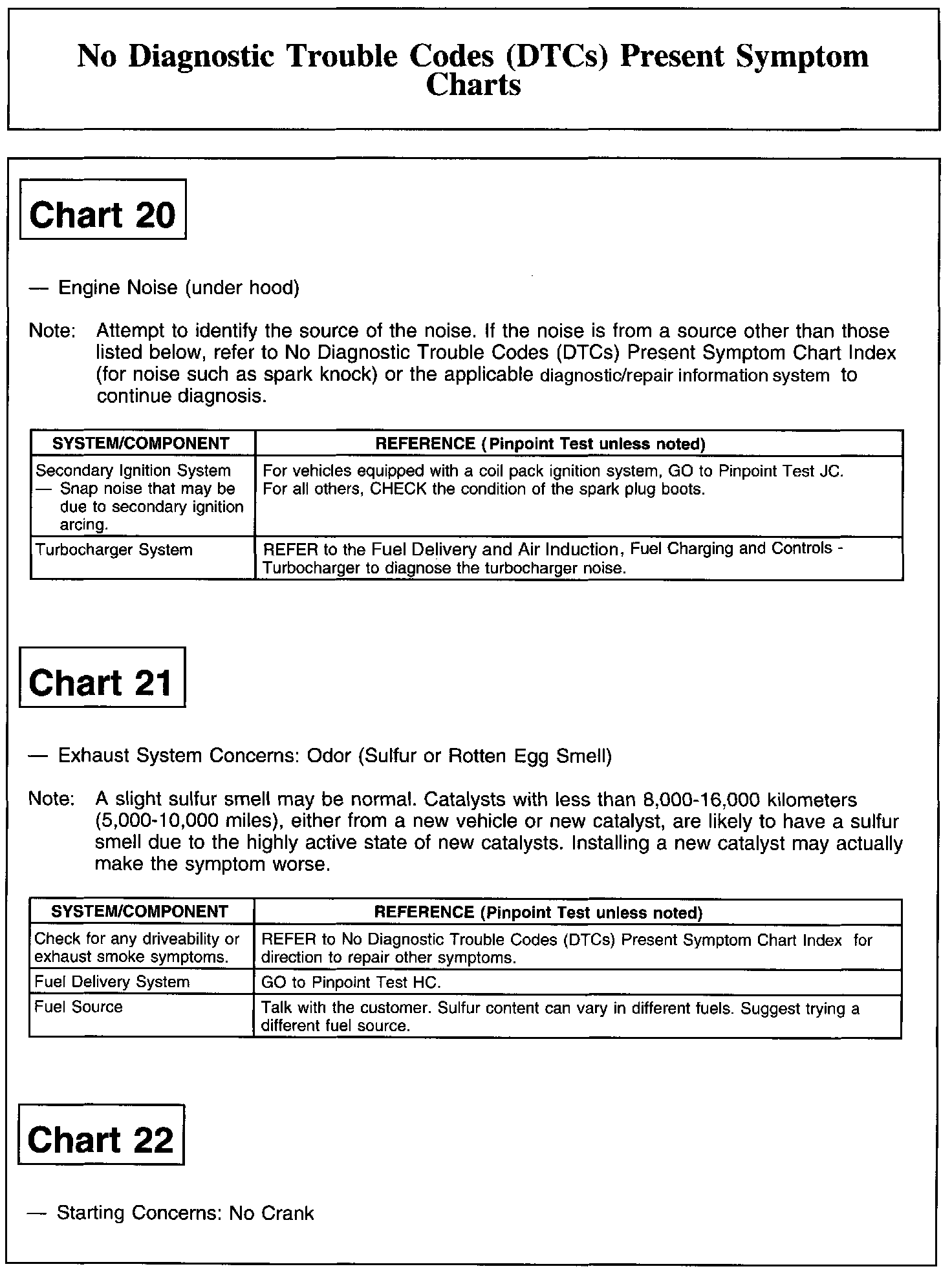 No Diagnostic Trouble Codes (DTCs) Present Symptom Charts