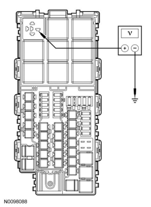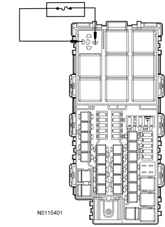 - Connect one end of a fused jumper wire to BJB starter relay socket, pin 30, circuit SBB19 (/BURD) and momentarily connect the other end of the fused jumper wire to BJB starter relay socket, pin 87, circuit CDC25 (BN/GN).