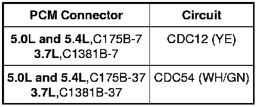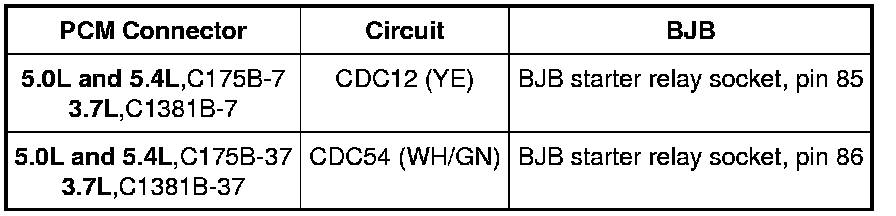 - For 5.0L and 5.4L, between PCM C175B-16, circuit CDC35 (BU/WH) and ground, while holding the key in the START position.