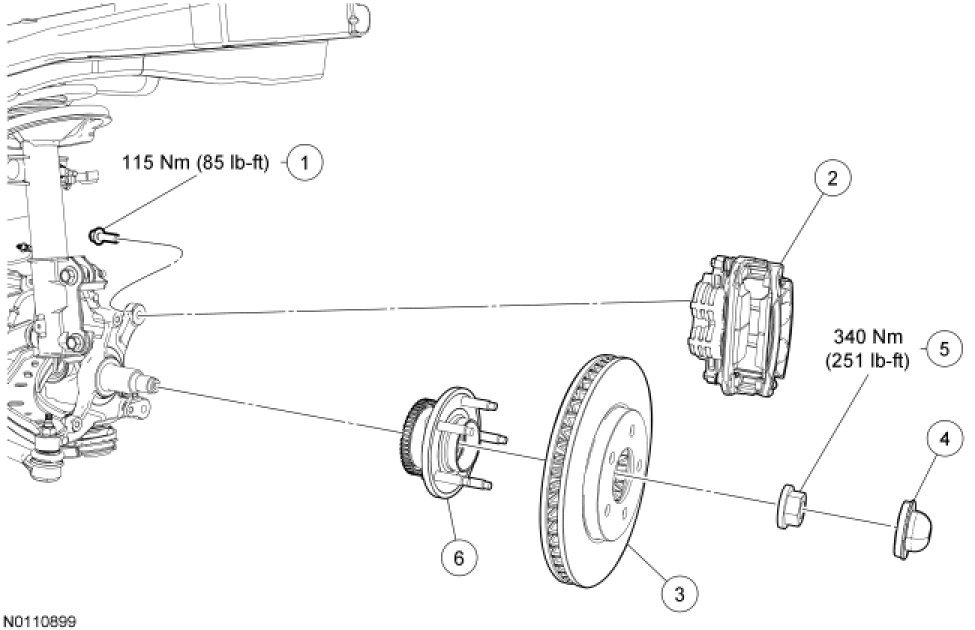 - To install, tighten the new nut to 340 Nm (251 lb-ft).