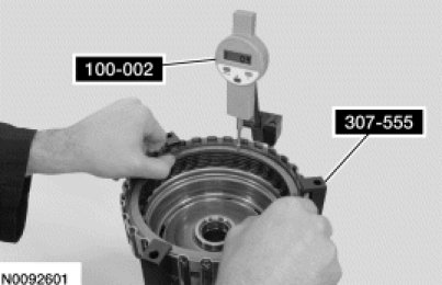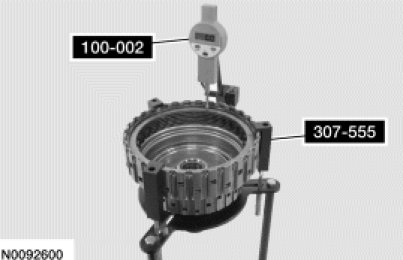 14. Rotate the direct clutch assembly 180 degrees from the opening of the snap ring, take a second reading and record this reading as reading B.