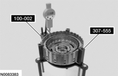 Install the forward clutch assembly into the Clutch End Play Gauge and install the Dial Indicator Gauge with Holding Fixture and position the plunger so it fits into the opening of the snap ring.
