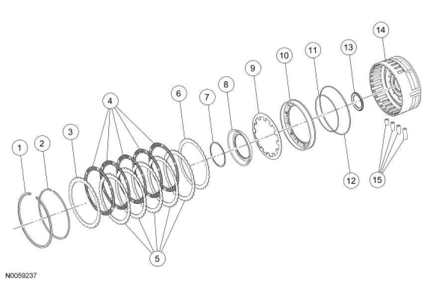 NOTICE: The intermediate clutch plate quantity is model dependent on engine size. Check the clutch plate quantity charts in specifications for the correct clutch plate quantity. Failure to install the correct clutch plate quantity will result in transmission failure.
