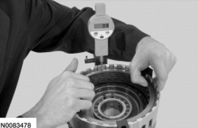 11. Rotate the intermediate clutch assembly 180 degrees from the opening of the snap ring, take a second reading and record this reading as reading B.