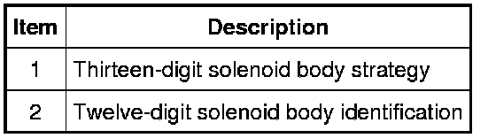 2. NOTE: Letters are not used in the 13 digit solenoid body strategy. The characters consist of all numbers.