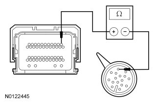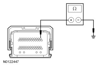 - For vehicles equipped with a 3.7L engine, measure the resistance between the transmission vehicle harness PCM C1381T-16 circuit VET33 (WH/OG) and ground.