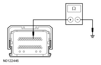 - For vehicles equipped with a 5.0L (4V) engine, measure the resistance between the transmission vehicle harness PCM C175T-1 circuit VET33 (WH/OG) and ground.