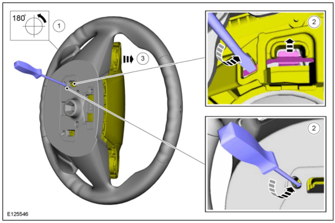 - After installation, pull the driver air bag from the 3 and 9 o'clock positions to make sure it is retained in the steering wheel, then push it back in again.