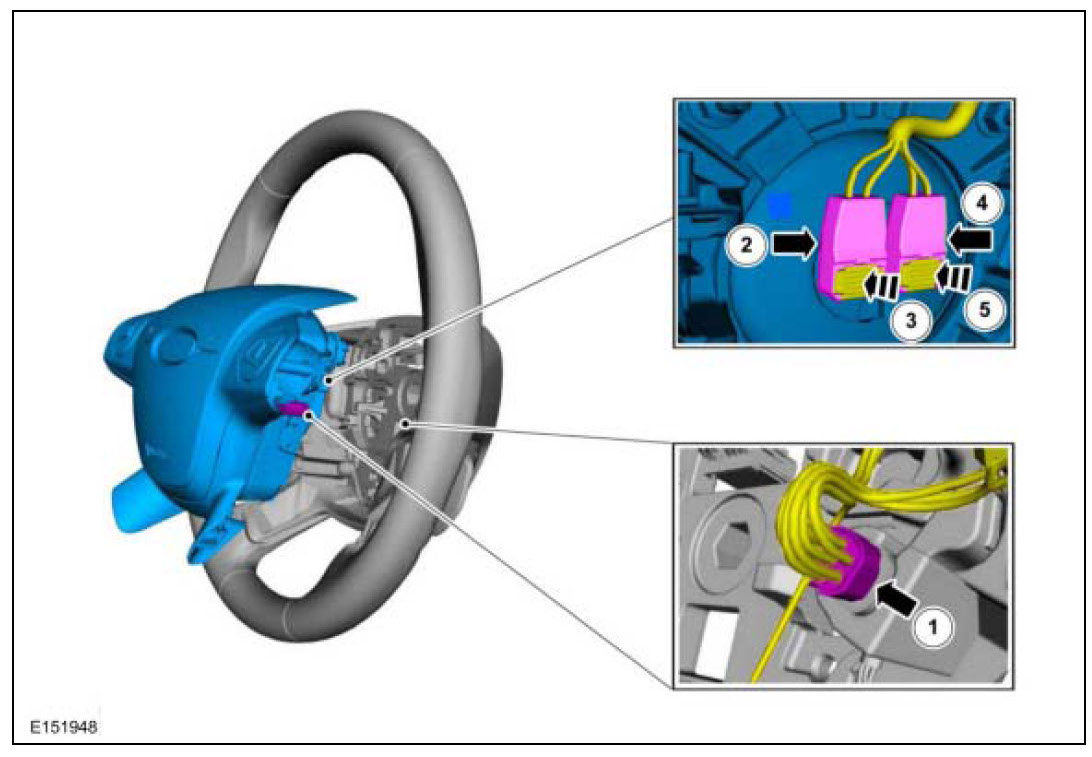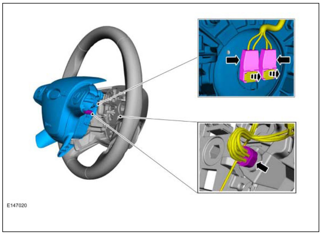 2. NOTICE: The driver air bag module electrical connectors are unique and cannot be reversed when connected to the driver air bag module. Match the electrical connector key to the keyway in the driver air bag module. Do not force the electrical connectors into the driver air bag module. Damage to the connector or component may occur.