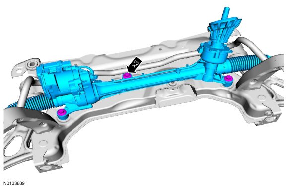 2. Position the steering gear on the subframe and loosely install the 3 new steering gear bolts.