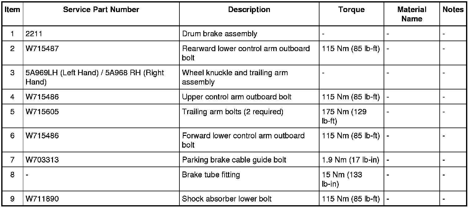 NOTICE: Suspension fasteners are critical parts that affect the performance of vital components and systems. Failure of these fasteners may result in major service expense. Use the same or equivalent parts if replacement is necessary. Do not use a replacement part of lesser quality or substitute design. Tighten fasteners as specified.