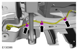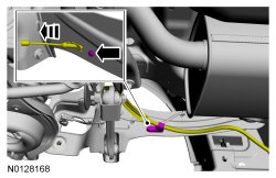 1. Remove and discard the upper control arm outboard bolt and position the brake flexible hose and the wheel speed sensor harness and mounting brackets aside.