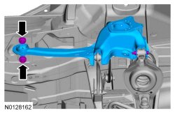 1. Remove and discard the rearward lower control arm outboard bolt.