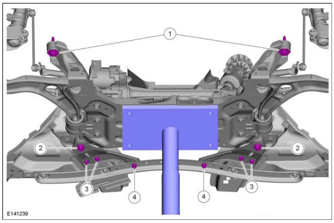 4. NOTE: While tightening the subframe bolts, make sure the front subframe does not move.