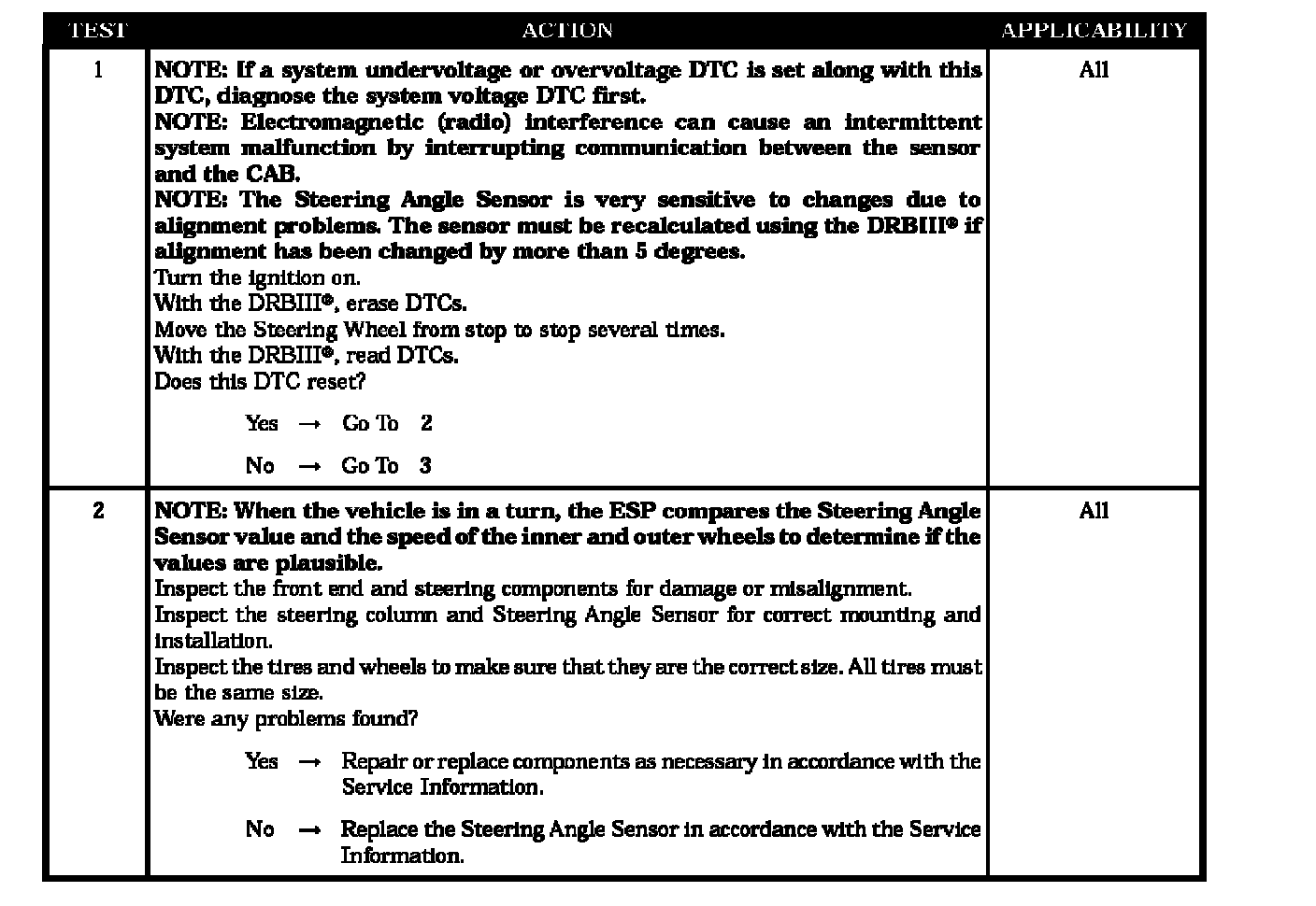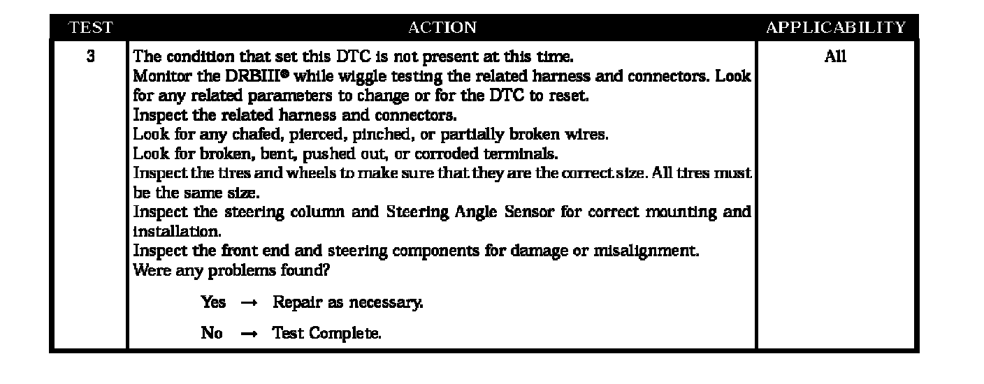 STEERING ANGLE SENSOR INTERMITTENT DTC
