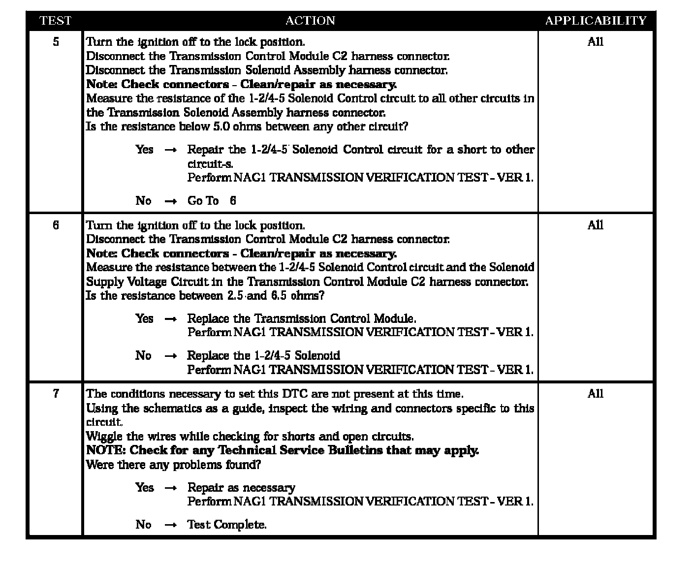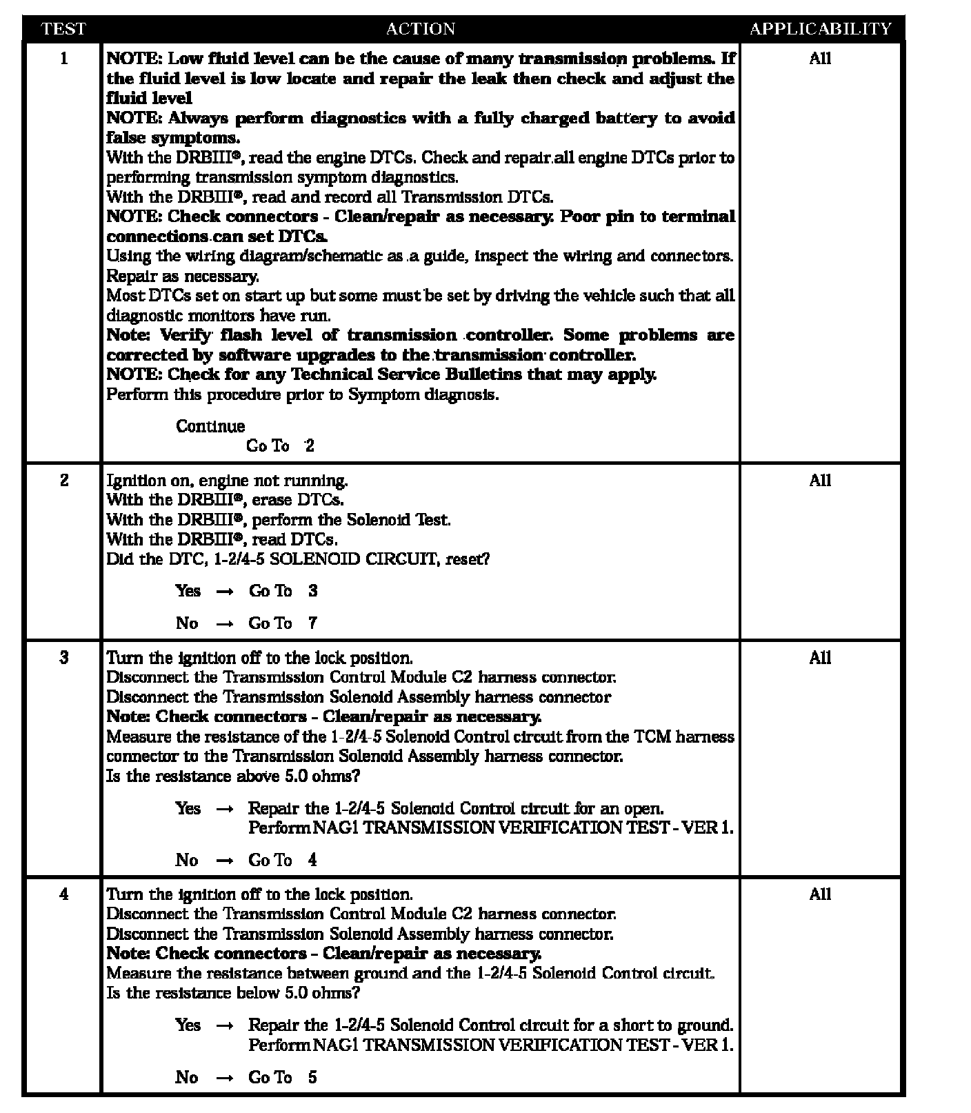 Test Note: All symptoms listed above are diagnosed using the same tests. The title for the tests will be 1-2/4-5 SOLENOID CIRCUIT.