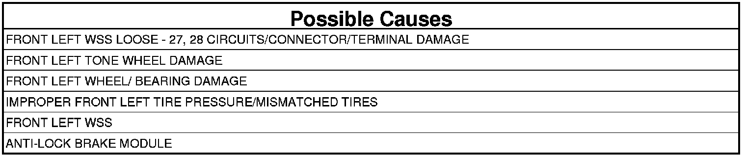 When the Front Left Wheel Speed Sensor (WSS) Signal is intermittently missing while vehicle speed is above 40 km/h (25 mph) or erratic wheel speed signal during acceleration or sensed wheel speed is different from other wheels.