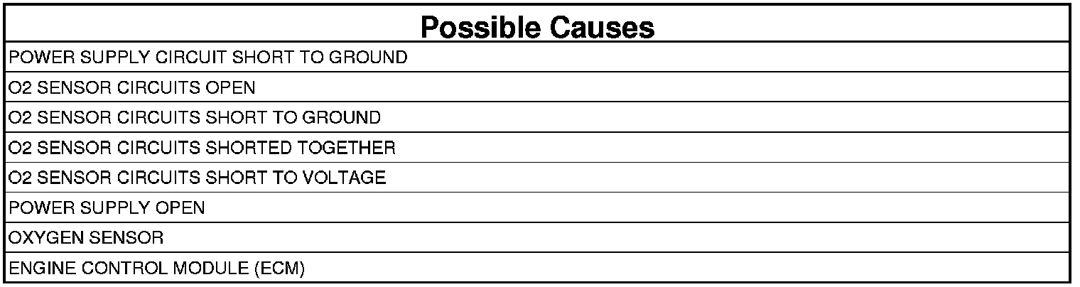 1. Using an ohmmeter, check the O2 Sensor circuits for shorts together (resistance below 1000 ohms).