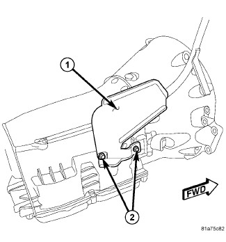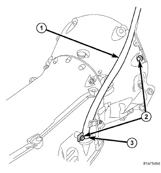 3. Remove the transmission fill tube bolts (2).