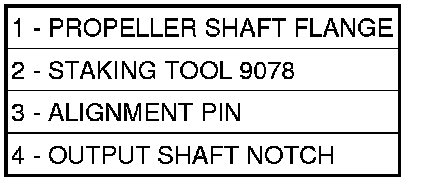 6. Rotate the Staking Tool 9078 (2) until the alignment pin (3) engages the output shaft notch (4).