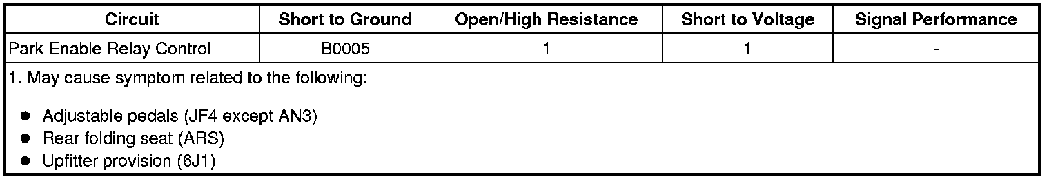 4. If the circuit tests normal and the DTC is current, test or replace the park enable PCB relay.